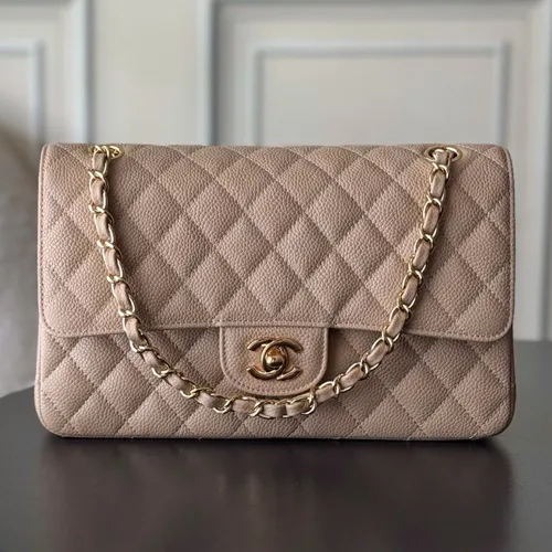 Chanel 샤넬 클래식 플랩백 CF 1112 베이지 Haas 캐비어 카프스킨 (업그레이드 버전)금장