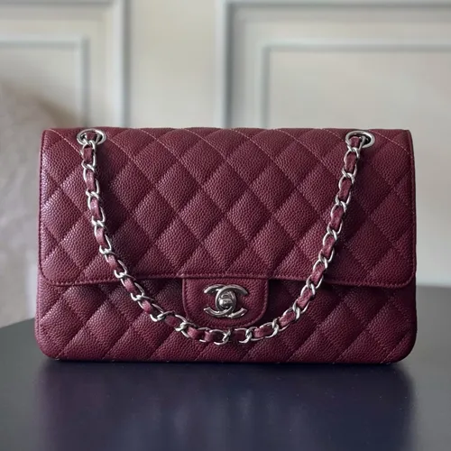 Chanel 샤넬 클래식 플랩백 CF 1112 버건디 Haas 캐비어 카프스킨 (업그레이드 버전)은장