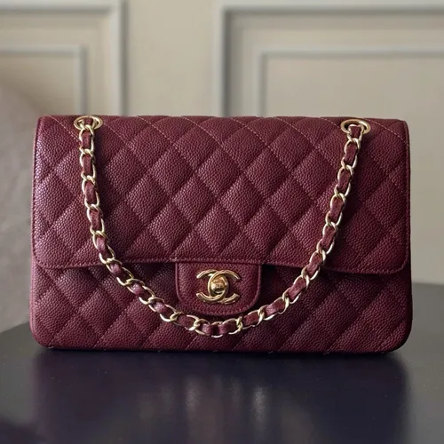 Chanel 샤넬 클래식 플랩백 CF 1112 버건디 Haas 캐비어 카프스킨 (업그레이드 버전)금장