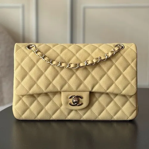 Chanel 샤넬 클래식 플랩백 CF 1112 옐로우 Haas 캐비어 카프스킨 (업그레이드 버전)금장