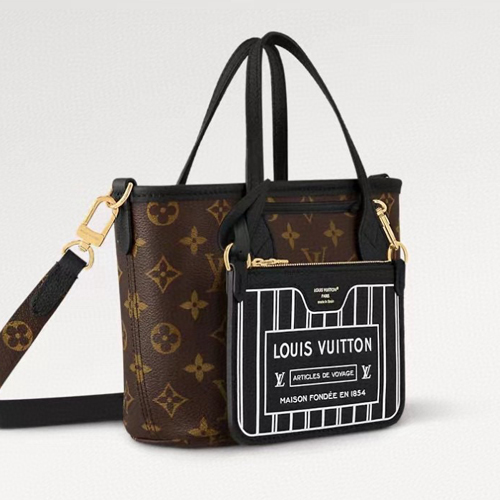 루이 비통 네버풀 반둘리에 인사이드 아웃 BB 핸드백은 클래식한 네버풀 디자인을 재해석한 양면 버전입니다. 한쪽 면은 루이 비통의 상징적인 모노그램 캔버스로, 다른 한쪽 면은 고급스러운 그레인 가죽으로 마감되어 두 가지 스타일을 연출할 수 있습니다. 특히 M12099 모델은 블랙 그레인 가죽 면이 특징입니다.