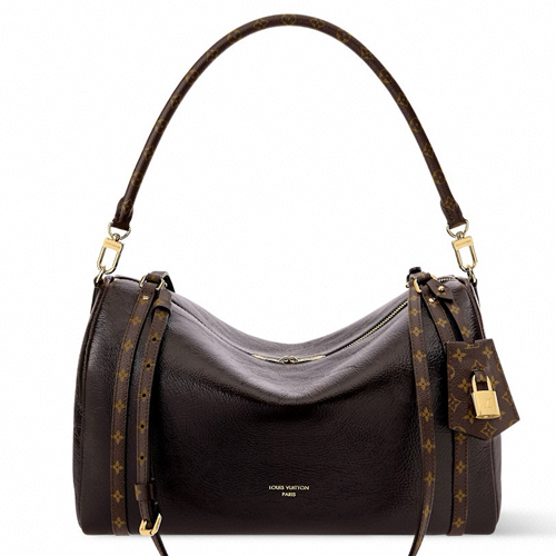 다양한 착용 방식으로 활용 가능하며, LV 로고 자물쇠와 네임태그 장식이 더해져 전체 디자인에 고급스러운 디테일을 완성합니다.