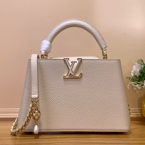 Louis Vuitton 루이비통 Capucines BB 핸드백 M25611 화이트 / 소가죽+뱀피패턴+진주장식