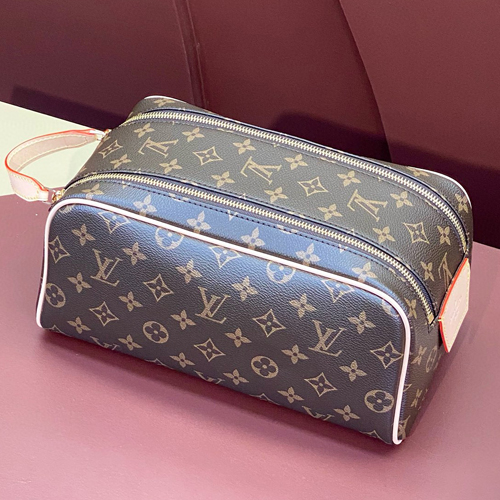 이 제품은 루이비통의 다미에 캔버스 소재로 제작된 세면 파우치입니다. 넉넉한 수납 공간과 심플한 디자인으로 여행 시 필수품을 보관하기에 좋습니다.