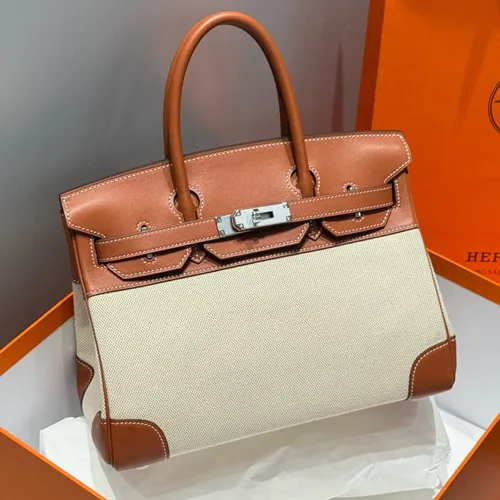 제품명 Hermes 에르메스 버킨 30 Swift 가죽 & 캔버스 빈티지 브라운 은장