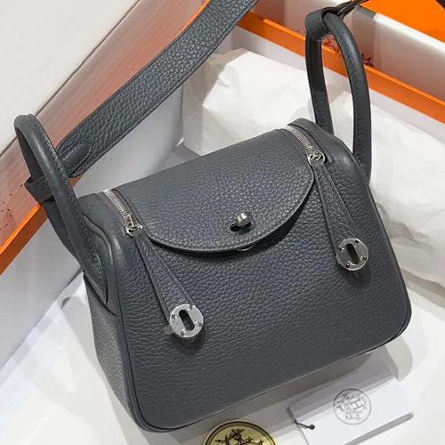 Hermes 에르메스 미니 린디 19 클레망스가죽 그레이 은장