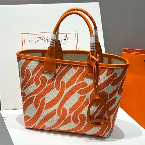 Hermes 에르메스 스티플 토트 쇼퍼백 캔버스 & 레더 28CM 오렌지