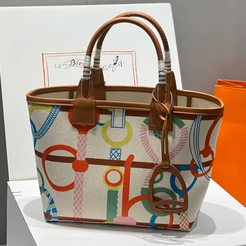 Hermes 에르메스 스티플 토트 쇼퍼백 캔버스 & 레더 28CM 멀티컬러