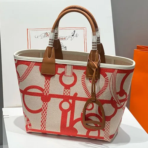 Hermes 에르메스 스티플 토트 쇼퍼백 캔버스 & 레더 28CM 레드