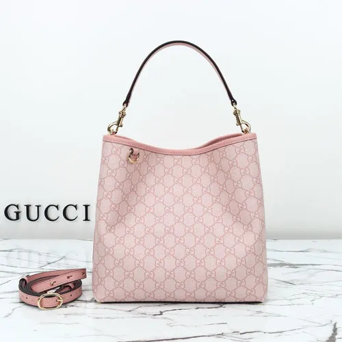 GUCCI GG Emblem 미디엄 버킷백 핑크 #815103