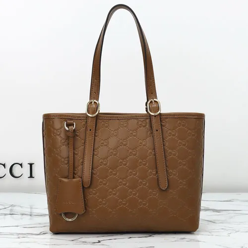 GUCCI GG 엠블럼 미디엄 토트백 브라운