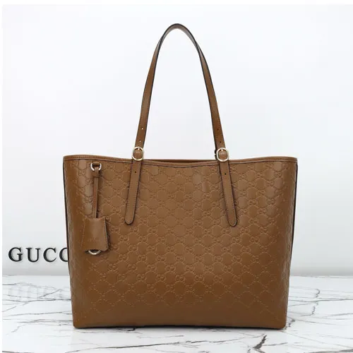 GUCCI GG 엠블럼 라지 토트백 브라운