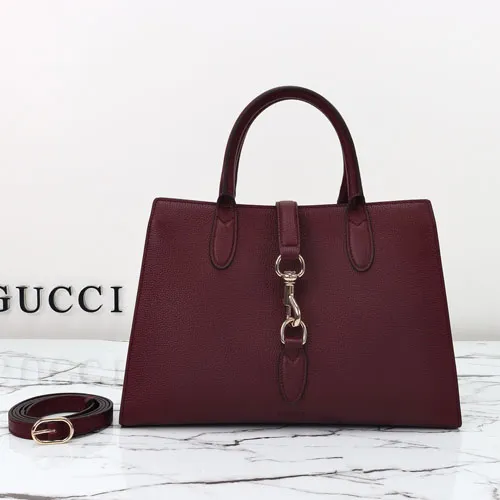 GUCCI 구찌 인터로킹 G 홀스빗 자카드 토트백 버건디 31CM
