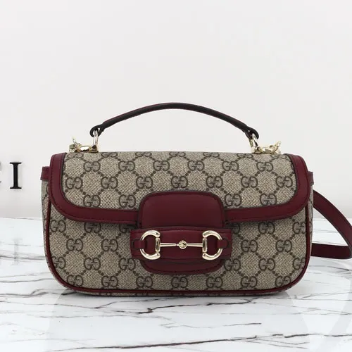 GUCCI 구찌 Horsebit 1955 소프트 스몰 홀스빗 탑핸들백 버건디 22.5CM #815206
