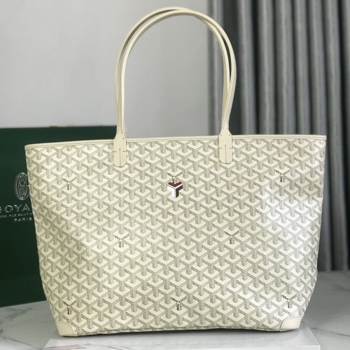 이 제품은 Goyard의 구조적인 토트백인 Zip Tote MM 모델로, 고야드만의 Goyardine 캔버스와 가죽 코너 처리, 지퍼 클로저를 갖춘 실용성과 스타일을 겸비한 아이템입니다. 스타일 설명에 따르면 “여러 차례 소재 및 가죽에 대한 연구와 개선을 통해 고객의 고품질 요구를 충족시키기 위해 제작”된 모델입니다. 이미지에 따르면 입구 폭 약 49 cm, 바닥 35 cm × 높이 27 cm × 바닥폭 14 cm 사이즈로 안내되어 있으며, 넉넉한 수납과 일상·출퇴근·여행용으로도 적합한 디자인입니다. 모델번호로는 020186이 제시되어 있습니다.