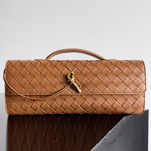 Bottega Veneta Andiamo 이브닝 클러치는 브랜드의 시그니처 인트레치아토 위빙(Intercciato Weaving) 디자인으로 제작된 고급 가죽 클러치백입니다.