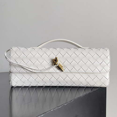 Bottega Veneta Andiamo 이브닝 클러치는 브랜드의 시그니처 인트레치아토 위빙(Intercciato Weaving) 디자인으로 제작된 고급 가죽 클러치백입니다.