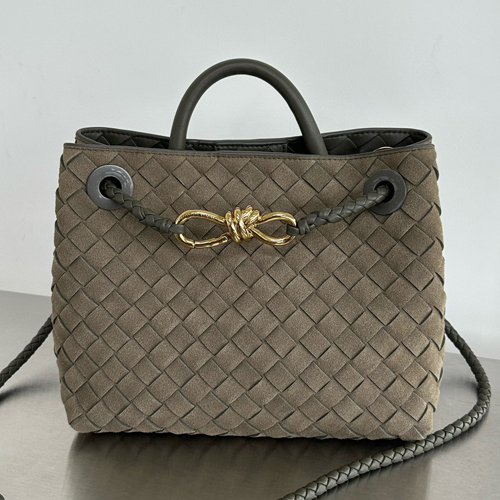 보테가 베네타의 시그니처 인트레치아토(Intrecciato) 위빙으로 제작된 2024 신상 Andiamo 스몰 토트백입니다.