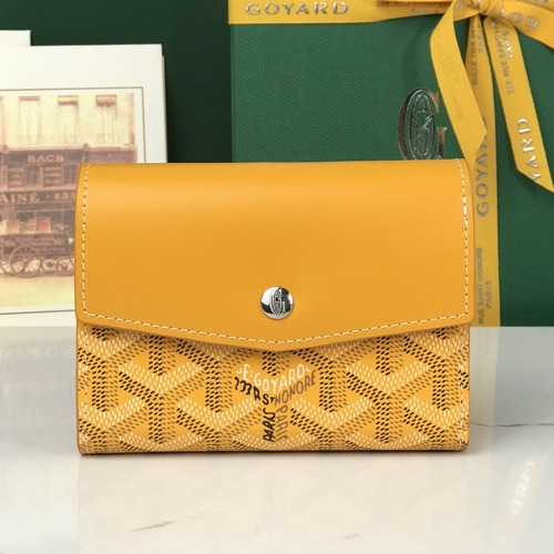 이 지갑은 고야드의 고야딘 캔버스(Goyardine)와 소가죽(Vauzelles calfskin)으로 정교하게 제작된 삼단 지갑으로, 앞면 플랩에 스냅 버튼이 있어 안전하게 잠글 수 있습니다. 내부에는 카드 슬롯 6개, 플랫 포켓 1개, 지폐 접이 수납공간 1개, 지퍼 동전 포켓 1개가 있으며 외부 뒷면에는 평평한 포켓도 존재합니다.