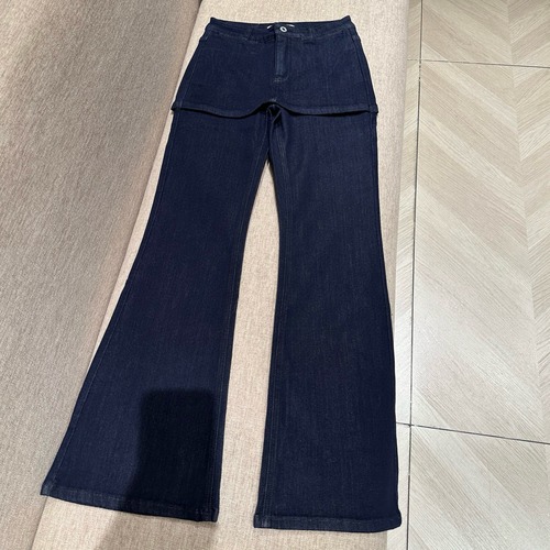 트렌디한 아이템으로 페이크 투피스 데님 팬츠입니다. 스커트 레이어드 디자인이 독특하고 패셔너블한 스타일을 연출합니다.