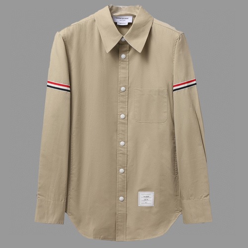 클래식한 옥스포드 코튼 소재로 제작된 TB 삼선 포인트 셔츠입니다. 어깨와 소매 부분에 TB 시그니처 삼색 테이프가 포인트로 적용되어 깔끔하면서도 브랜드 감각이 돋보이는 디자인입니다.