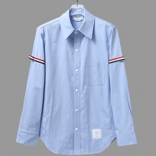 톰브라운의 시그니처 디자인인 삼선 밴드가 소매에 적용된 코튼 셔츠입니다. 깔끔한 디자인과 고급스러운 소재로 제작되어 다양한 스타일링에 활용하기 좋습니다.