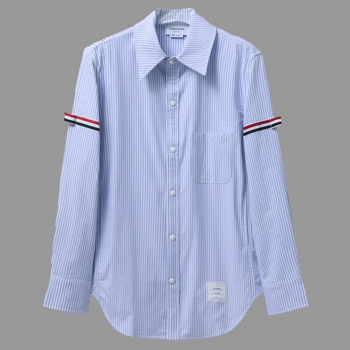 Thom Browne TB 삼선 포인트 순면 옥스포드 스트라이프 셔츠 (더블 슬리브 라벨 디테일)