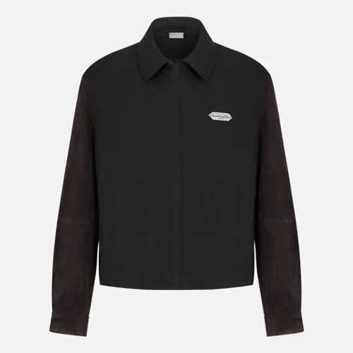 이 Dior 숏 자켓은 2025 FW 남성 신제품으로, Christian Dior Paris 로고 패치가 장식된 세련된 디자인입니다.