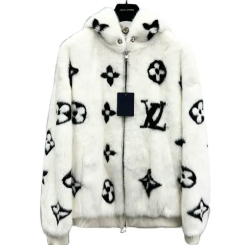 LouisVuitton 루이비통 모노그램 100%수달모피 후드 집업 자켓 화이트