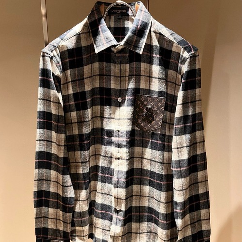 Louis Vuitton 루이비통 2025 FW 체크 셔츠 가죽 포켓 로고 패치 남녀공용 셔츠