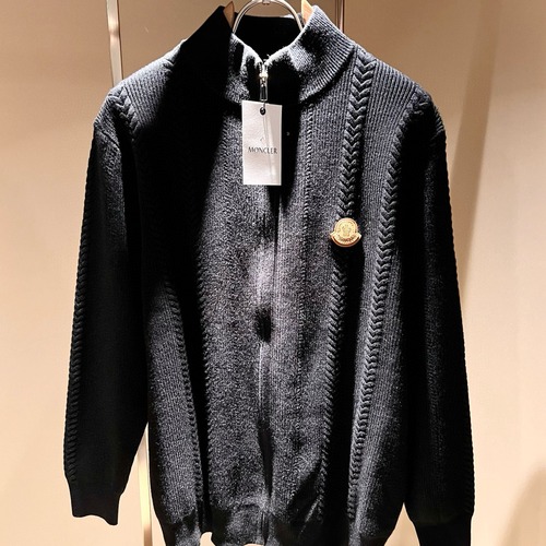 Moncler 2025 F/W 시즌 남녀공용 커플 니트 가디건으로, 최신 무역 오더라인 제품입니다. 고급 울 혼방 니트 소재를 사용해 부드럽고 입체감 있는 짜임이 특징이며, Moncler 로고 자수 패치로 포인트를 주었습니다.