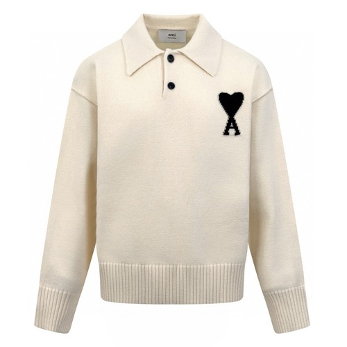 아미 파리의 하트 자수 폴로 셔츠입니다. 부드러운 양모 소재로 제작되어 편안한 착용감을 제공하며, 가슴 부분에 아미의 시그니처 하트 로고 자수가 돋보입니다. 폴로 칼라 디자인으로 세련된 느낌을 더했습니다.