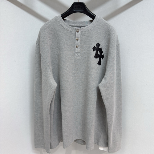 이 크롬하츠 긴팔 티셔츠는 독특한 디자인과 편안한 착용감으로 주목받고 있습니다. 그레이 색상의 티셔츠는 부드러운 소재로 제작되어 일상에서 쉽게 스타일링할 수 있습니다. 앞면에는 자수로 된 로고가 포인트를 주어 심플하면서도 세련된 느낌을 자아냅니다.