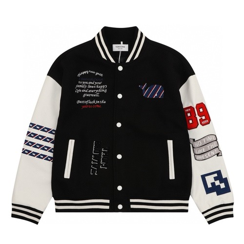톰브라운의 다중 자수 장식이 들어간 사선 스트라이프 야구점퍼로, 고급스러운 그레이와 화이트 컬러의 조합이 돋보입니다. 팔 부분에는 숫자 자수와 로고 패치가 포인트로 적용되었으며, 등판에는 톰브라운 특유의 동물 모티프 자수가 세련되게 표현되어 있습니다. 손세탁 또는 드라이클리닝을 권장합니다.
