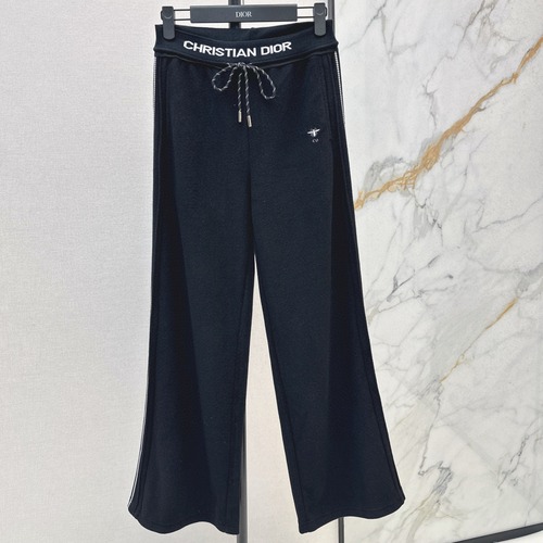 Dior 로고 밴드가 허리 부분에 디자인된 니트 팬츠로, 편안하면서도 세련된 라인이 특징입니다. 고급 니트 소재로 제작되어 신축성이 좋고 부드러운 착용감을 제공합니다. 클래식한 일자핏 실루엣으로 다리를 길고 슬림하게 보이게 하며, 일상부터 오피스룩까지 다양한 스타일링이 가능합니다. 허리 끈 조절이 가능해 체형에 맞게 편안하게 착용할 수 있습니다.