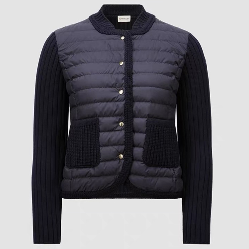 몽클레르의 25Ss 컬렉션에서 선보이는 여성 니트 패딩 가디건입니다. 겨울철 이너웨어로 활용하기 좋은 아이템으로, 세련된 H라인 실루엣과 퀼팅 디테일이 돋보입니다.
