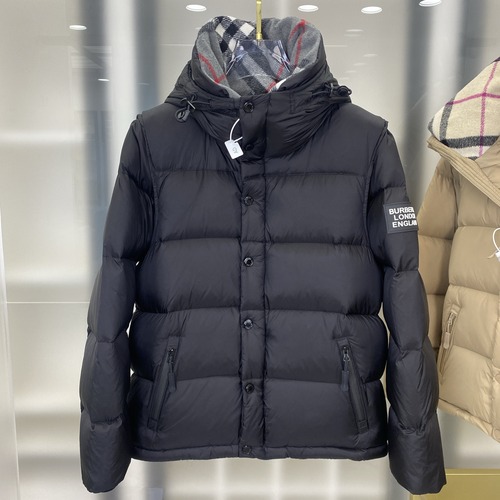버버리의 가을/겨울 신상품, 탈부착 가능한 소매의 후드 다운 패딩입니다. 빈티지 체크 안감으로 포인트를 주어 버버리만의 클래식한 감성을 더했습니다.