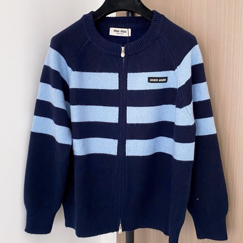 25년도 신상 미우미우 로고 포인트 스트라이프 집업 가디건입니다. 투톤 배색이 세련된 느낌을 주며, 상체 라인을 슬림하게 보이게 하는 핏으로 디자인되었습니다. 가볍고 부드러운 소재감으로 착용감이 우수하며, 다양한 코디에 매치하기 좋은 베이직 아이템입니다. 컬러는 2가지, 사이즈는 36/38/40으로 구성되어 있습니다.