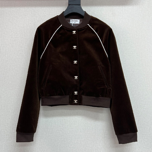 25년 가을/겨울 시즌을 겨냥한 샤넬의 신상 코듀로이 벨벳 재킷입니다. 고급스러운 소재와 섬세한 디테일이 돋보이는 제품입니다.