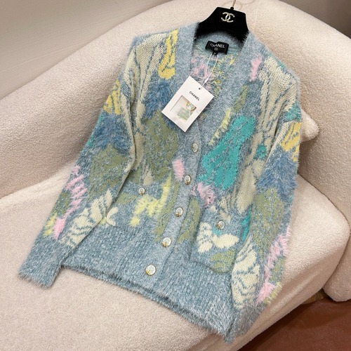 Chanel 샤넬 파스텔 플로럴 패턴 V넥 가디건