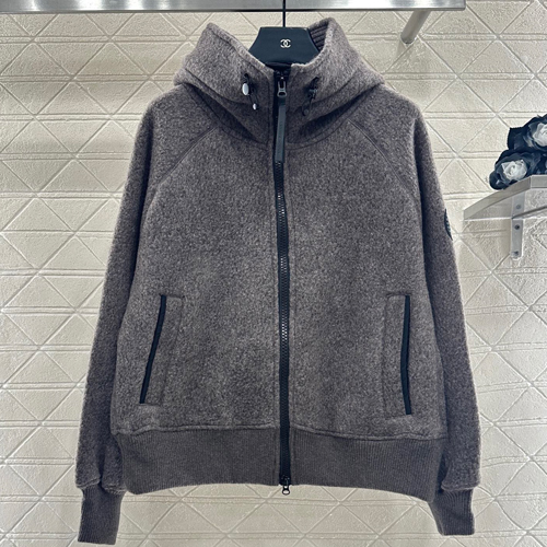캐나다 구스의 2025년 신상 여성 후드 집업 재킷입니다. YB에서 수입한 캐시미어 소재를 사용하여 부드럽고 편안한 착용감을 제공합니다.