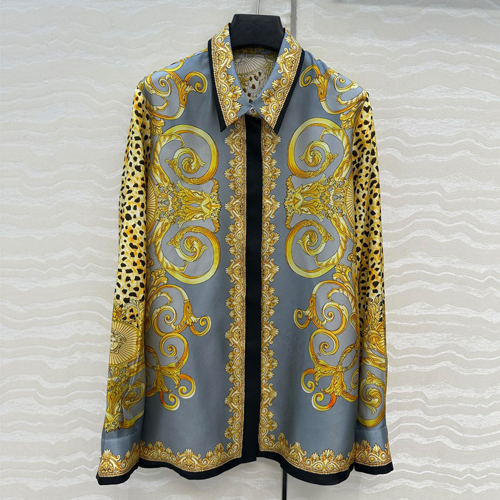 베르사체 특유의 화려하고 고급스러운 프린트가 돋보이는 실크 셔츠입니다. 100% 실크 소재를 사용하여 부드러운 촉감과 은은한 광택이 특징입니다.