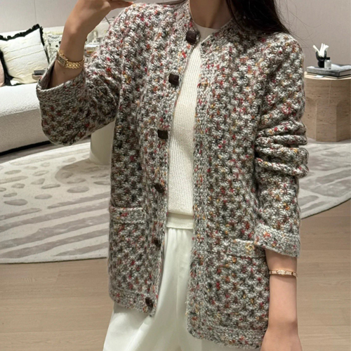LP* 단독 출시, 고급 원단과 편안한 착용감의 니트 가디건입니다. 톤 다운된 색상에 컬러풀한 짜임이 포인트로, 고급스러운 분위기를 연출합니다.