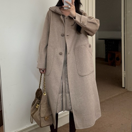 막스마라 25Ss 신상으로 출시된 울 캐시미어 더블세트 코트입니다. 안감은 고급 다운 패딩 베스트로 구성되어 있으며, 외피는 수입 호주산 초극세 울+양모 혼방 소재로 제작되었습니다. 넉넉한 H라인 실루엣에 고급스러운 그레이톤으로, 클래식하면서도 모던한 분위기를 연출합니다. 수공예 제작으로 디테일이 뛰어나며, 진가죽 단추와 YB 커스텀 금속장식이 포인트입니다. 두 벌 구성(울코트+패딩베스트)으로 단독 및 세트 착용 모두 가능하며, 보온성과 스타일을 동시에 만족시키는 고급 코트입니다.