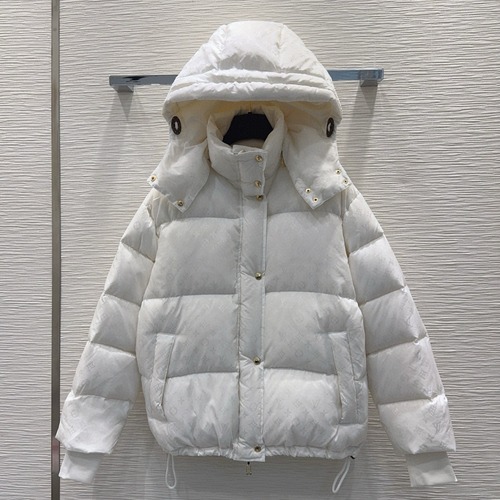Louis Vuitton 2025 FW 신상 화이트 구스다운 패딩 자켓. 90% 화이트 구스다운 충전재로 가볍지만 뛰어난 보온성을 자랑하며, 클래식한 루이비통 로고 디테일로 세련된 포인트를 더함. 넉넉한 품과 여유로운 기장으로 체형 커버가 자연스럽고, 착용 시 볼륨감 있는 실루엣이 연출됨. 고급 방풍·방수 소재를 사용해 추운 겨울철에도 따뜻하고 쾌적한 착용감을 제공. 탈부착 가능한 후드와 정교한 스냅 및 지퍼 디테일로 완성도를 높임.