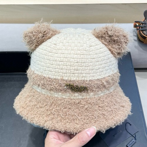 PRADA 프라다 귀여운 곰돌이 니트 버킷햇 - 겨울 신상 양털 퍼모자