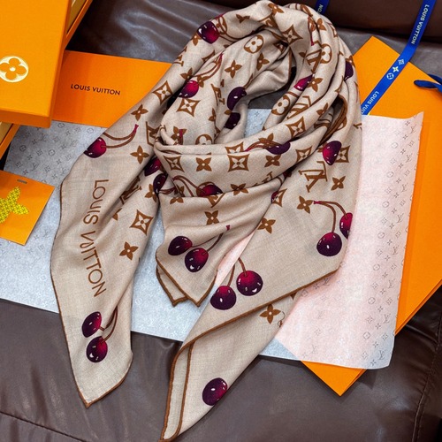 루이비통 LV x TM 모노그램 Cerise 140 실크 스카프입니다. 모노그램 Cerise 패턴이 특징이며, 일본 예술가의 영감을 받아 체리 모티브가 더해져 산뜻한 느낌을 줍니다.