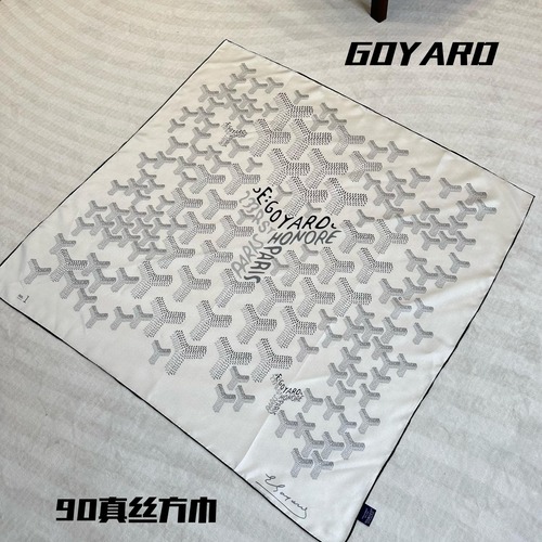 고야드 특유의 Chevron(셰브론) 모노그램 패턴이 돋보이는 고급 실크 100% 소재의 정사각 스카프입니다.