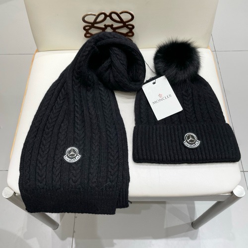Moncler 몽클레어 양모세트 모자 - 여우털 방울 포함 클래식 겨울 머플러 세트