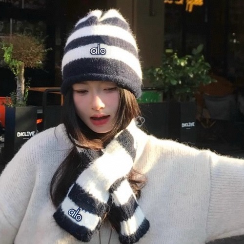 alo 알로 스트라이프 니트 모자 머플러 세트